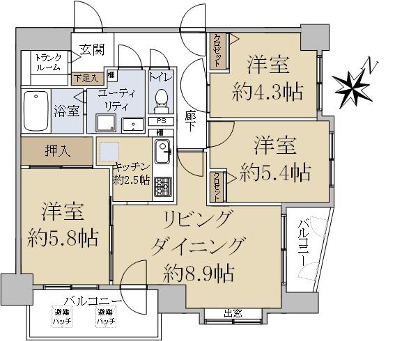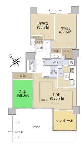 バルコニー方向が南向き(南西・南東含む)