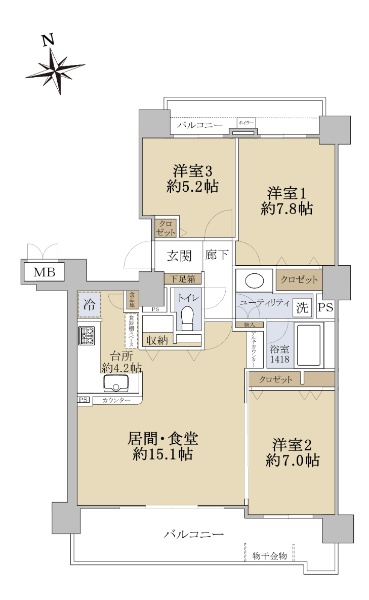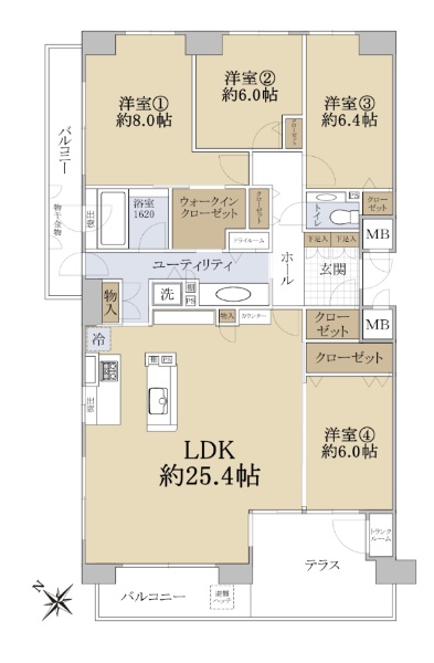 ◆LDK約25.4帖 ◆テラス付き二面バルコニー