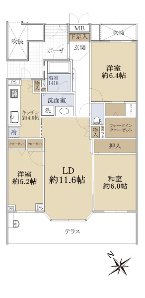 南西向き×3LDK専有面積79.17u×1階部分