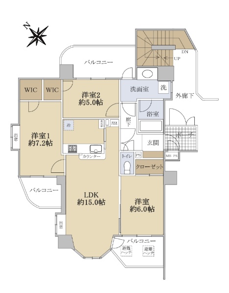 2路線利用可能 角部屋 専有面積:75.02u