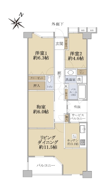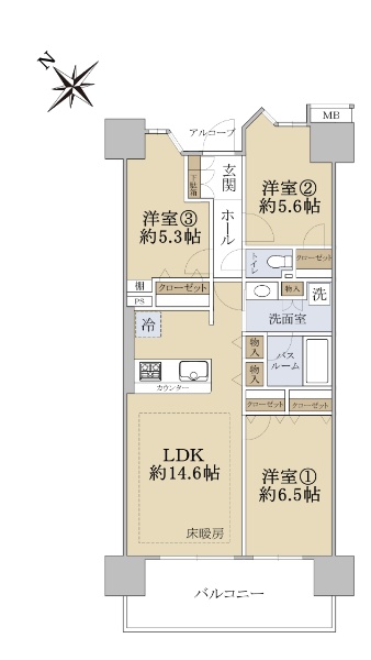 バルコニー方向が南向き(南西・南東含む)