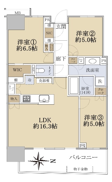 バルコニー方向が南向き(南西・南東含む)