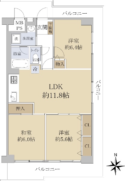 バルコニー方向が南向き(南西・南東含む)