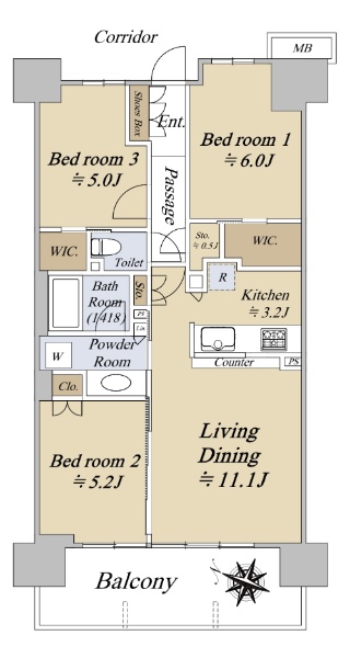 ■北東・北西向きの角住戸 ■収納豊富な59.24u/2LDK