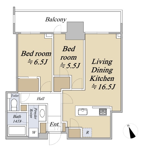 角部屋(北・東・西の3面開口)×11階部分