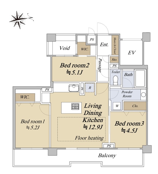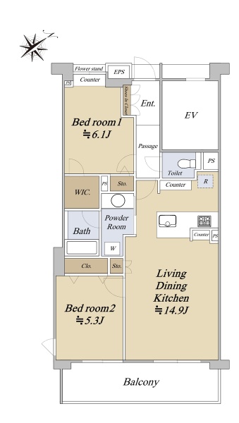 ■26階建て16階部分 ■55.33u・2LDK ■全居室6.0帖以上