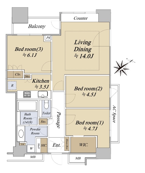 ■南東・南西向きの角住戸 ■収納豊富な76.72u/3LDK