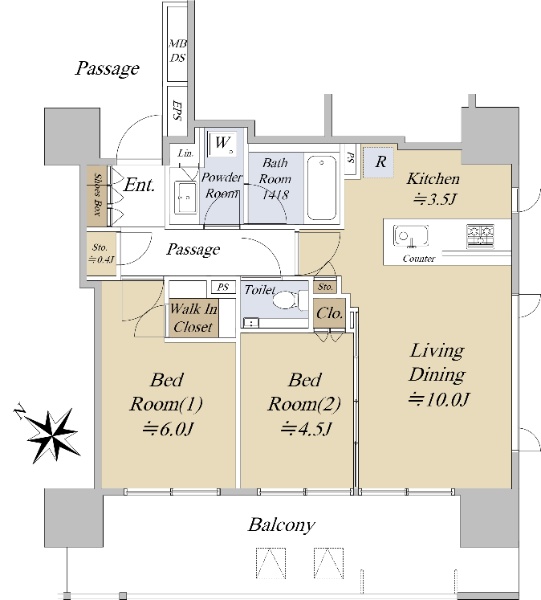 【住友不動産のシティハウス、6階角住戸、天井高2600mm、58.10uの2LDK住戸】