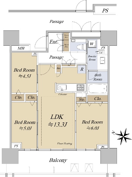 陽当たり眺望良好・最上階(EV有) 3方角部屋(北・西・南)