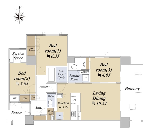 新築時売主×施工/住友不動産 専有面積72.32uの3LDK 南向き