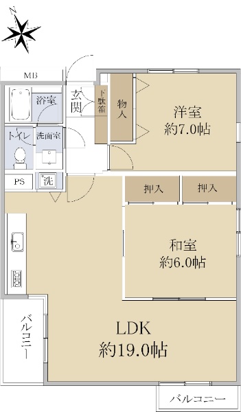 3DK、角部屋、2面バルコニー