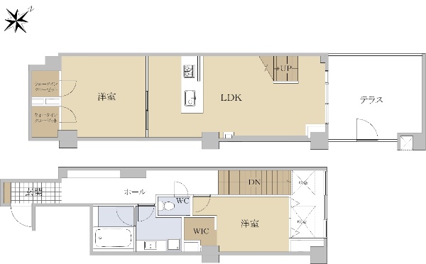 ◇ルーフバルコニー付き、約100平米の3LDK、メゾネットタイプ、南東向き住戸