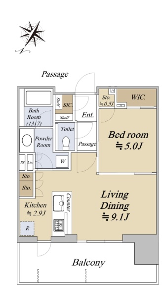 ウエストタワー20階部分 専有面積43.37u/1LDK+N+WIC