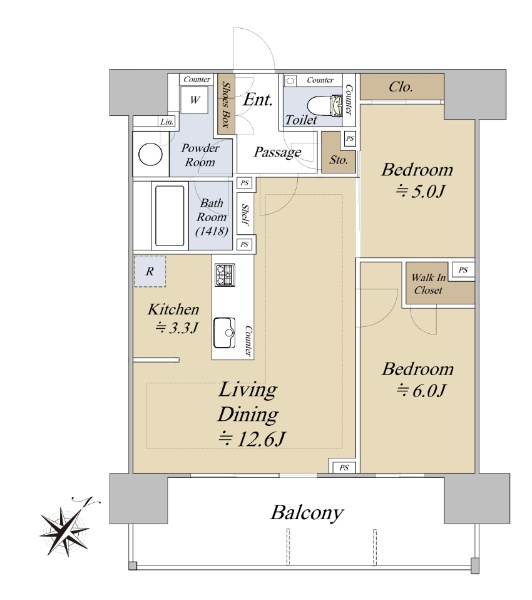 【高層階】3LDK/63.40u/南向きにつき陽当り良好!