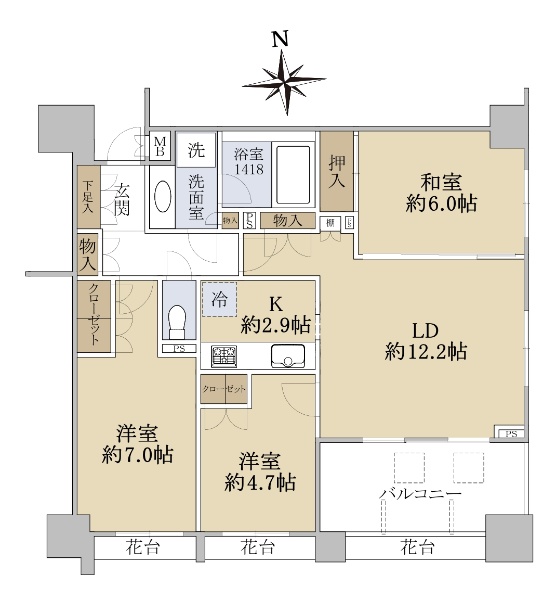 ◆専有面積103.85u◆2面バルコニー(南側、西側)につき陽当たり良好!