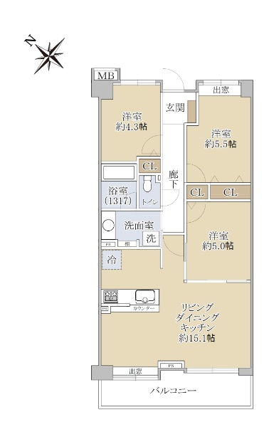• 南向き(南西・南東含む)バルコニー方向が南向き(南西・南東含む)