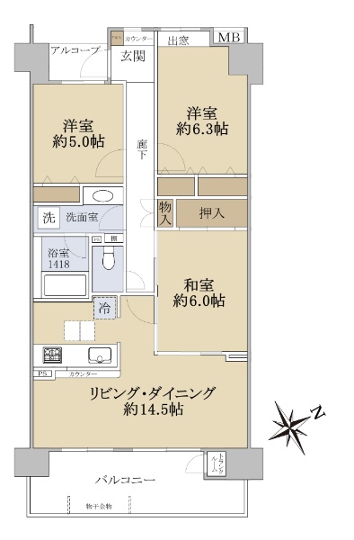 JR横浜線「淵野辺」駅徒歩5分 11階建3階部分 南西向き住戸