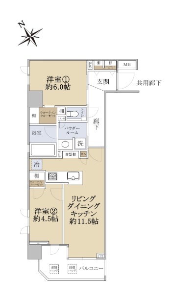 南西角住戸◇2LDK◇LDと洋室の一体利用が可能◇内廊下タイプ(共用廊下)