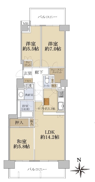最上階住戸☆エレベーター停止階☆北・南向き両面バルコニーのため陽当たり良好
