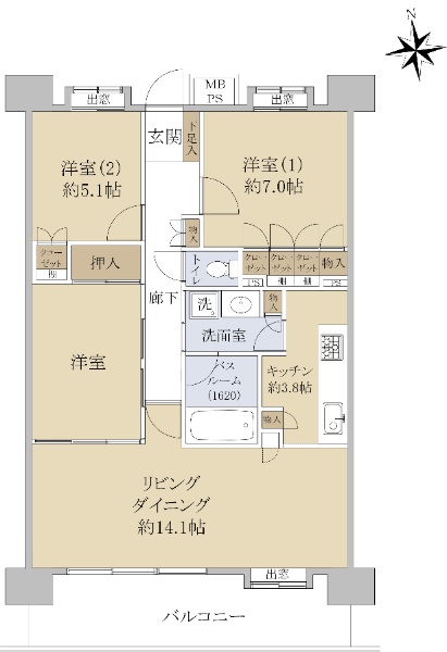 大師橋駅まで徒歩3分の駅近マンション、13階南向きのため陽当たり良好です