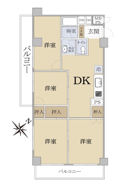 2階部分の南西×南東角部屋、間取り4DK