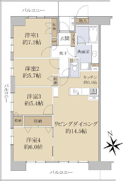 ☆南西角部屋 ☆専有面積95.0uの4LDK ☆内装リフォーム済です