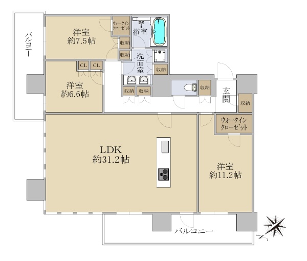 バルコニー方向が南向き(南西・南東含む)