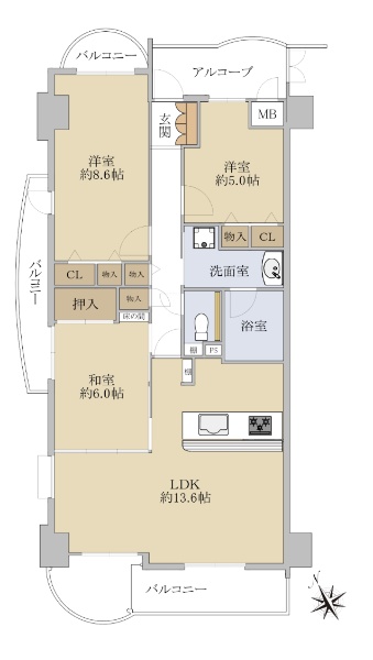 ■北・西・南の3方向角住戸 ■日当たり・風通良好 ■専有面積:81.68u・3LDK