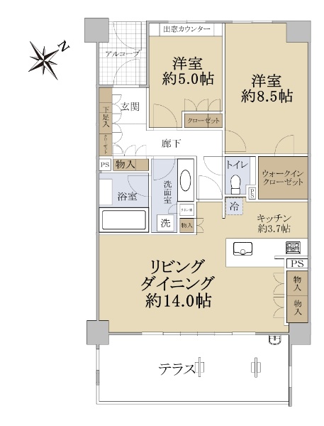 ■LDK約18.4帖 ■南向き、日当たり良好