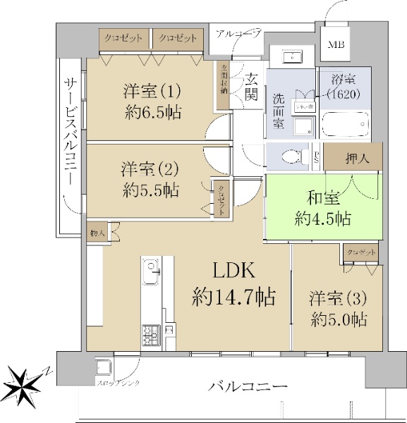 バルコニー方向が南向き(南西・南東含む)