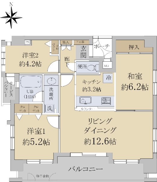 バルコニー方向が南向き(南西・南東含む)