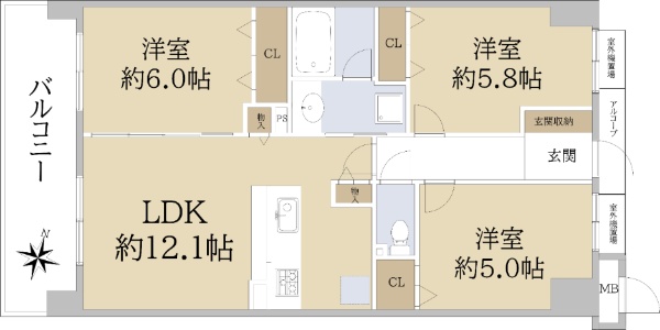 バルコニー方向が南向き(南西・南東含む)