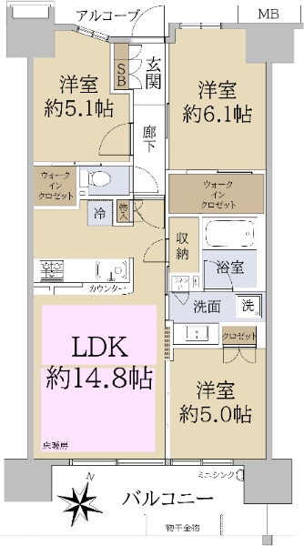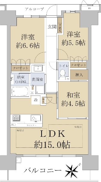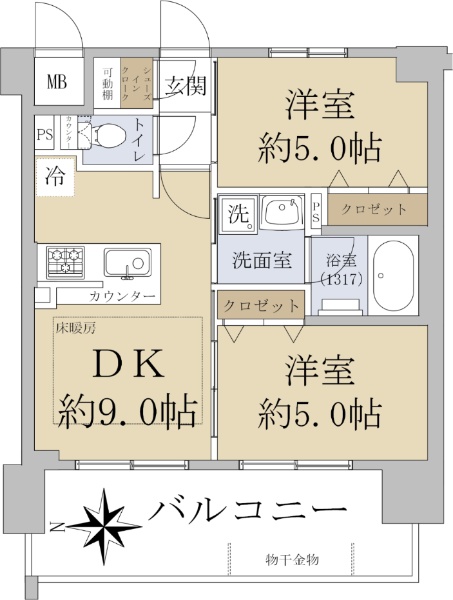 • 南向き(南西・南東含む)バルコニー方向が南向き(南西・南東含む)