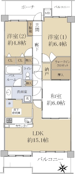 • 南向き(南西・南東含む)バルコニー方向が南向き(南西・南東含む)