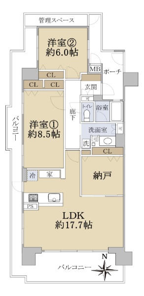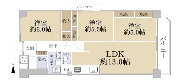 ◆10階建て9階部分 ◆南北東三面バルコニー ◆専有面積99.30u