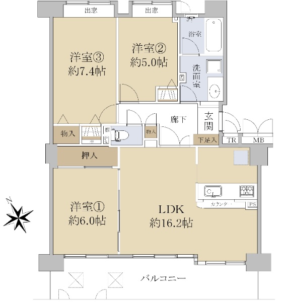 ■専有面積:91.93u ■角住戸のため、通風良好