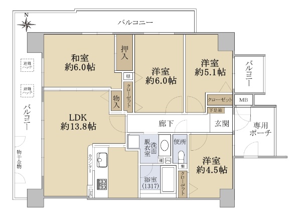 ◆4LDK 北西角住戸 ◆階下に住戸が無いお部屋!