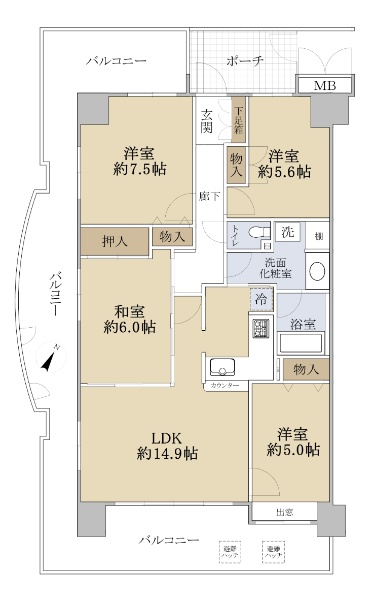 ☆角住戸 3面の引き回しバルコニー☆