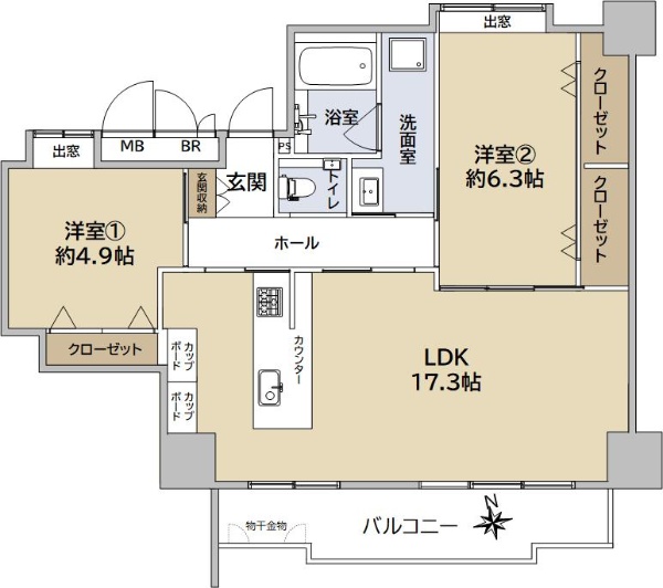 バルコニー方向が南向き(南西・南東含む)