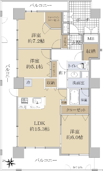 • 南向き(南西・南東含む)バルコニー方向が南向き(南西・南東含む)