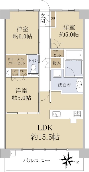 バルコニー方向が南向き(南西・南東含む)