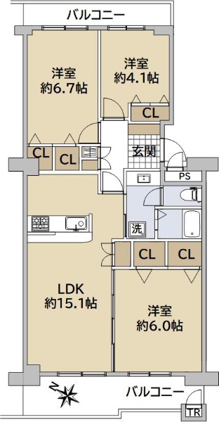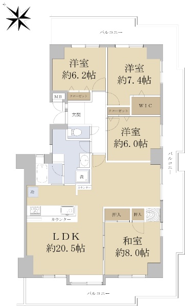 バルコニー方向が南向き(南西・南東含む)
