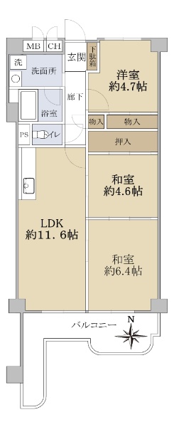 専有面積60.84u・3LDK・南向きバルコニー・2階部分
