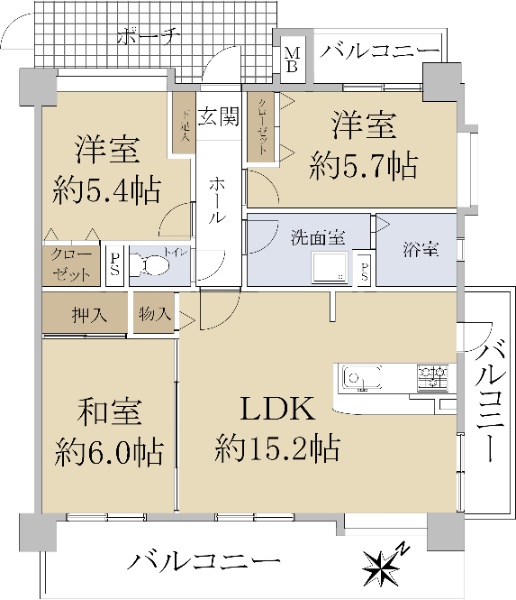 • 南向き(南西・南東含む)バルコニー方向が南向き(南西・南東含む)