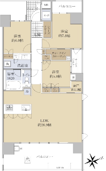 • 南向き(南西・南東含む)バルコニー方向が南向き(南西・南東含む)