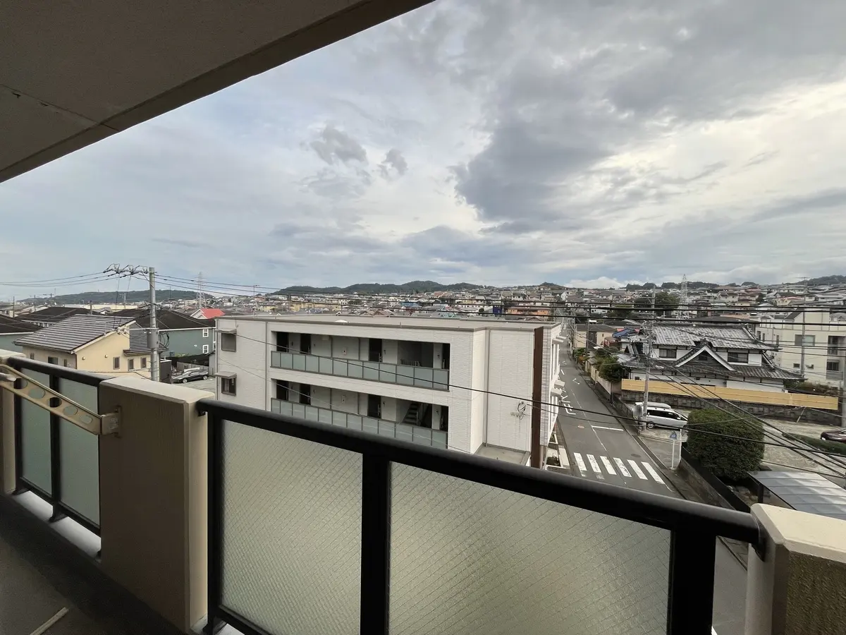 □南西角部屋で陽当たり通風良好です。西側にはサービスバルコニーがあります。