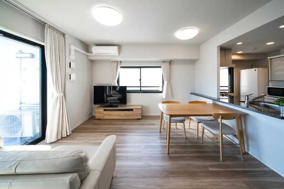 リビングダイニングは、天井高約2500mm(一部除く)の開放感に加え、南東・南西の角部屋につき陽当たりも良好です。