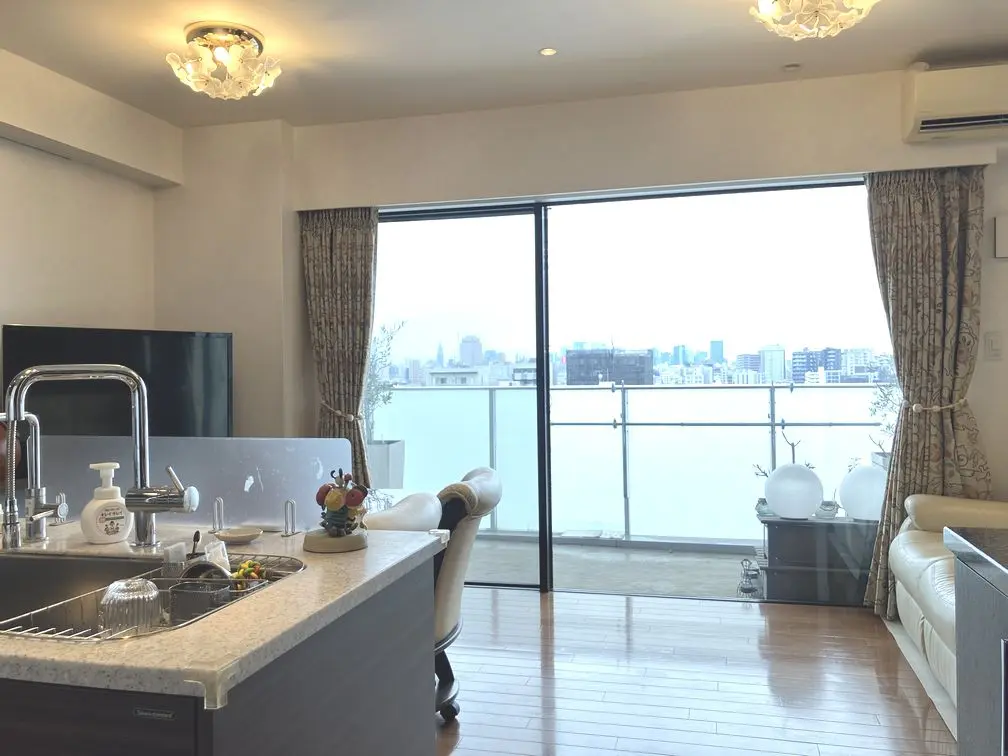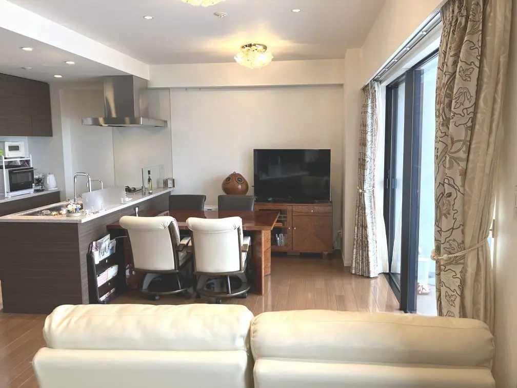 南西向きにつき陽当たり良好でございます。対面式キッチンからリビングダイニングの様子を伺える間取りのため、小さなお子様などの様子を伺いながら家事に専念できる仕様となっております。廊下やLDKにも収納が点在しており、収納豊富でございます。