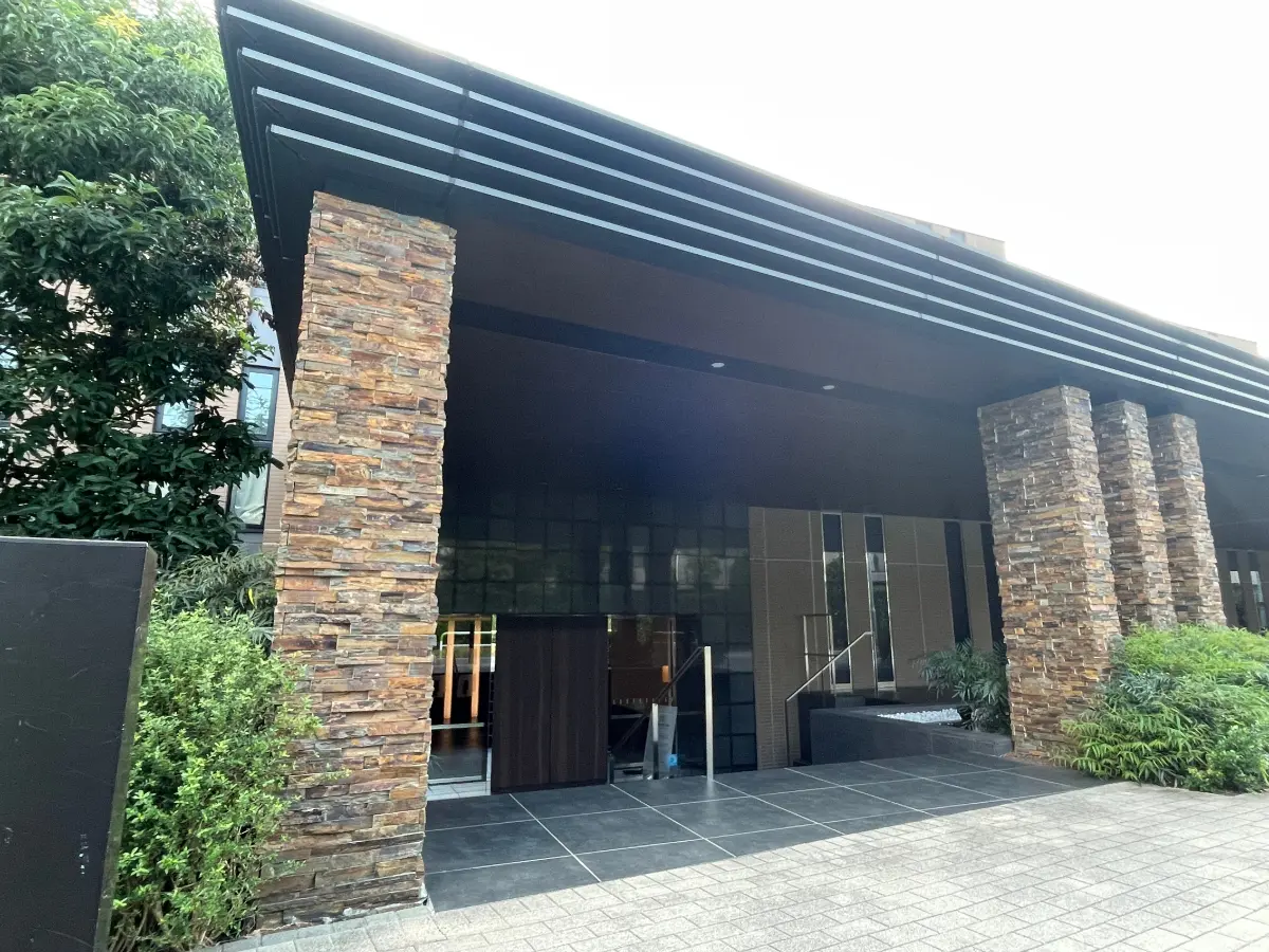 エントランスの列柱はひとつずつ表情の異なる自然石を採用、