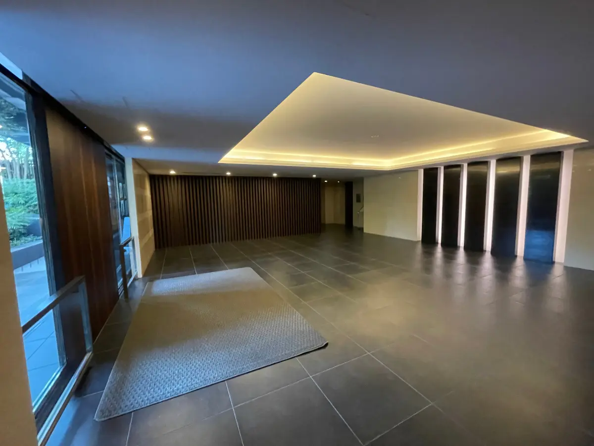 エントランスホール床面や壁面は重厚感があり、